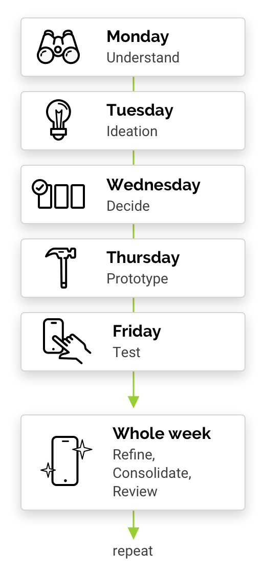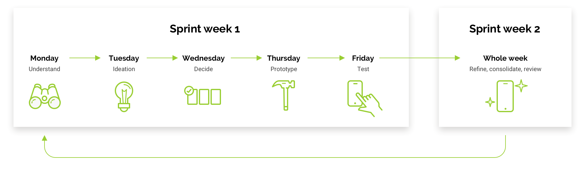 6 Sprints: Adoption of Google’s sprint model based around rapid researching, prototyping and testing. Each sprint looking at main areas of the business.