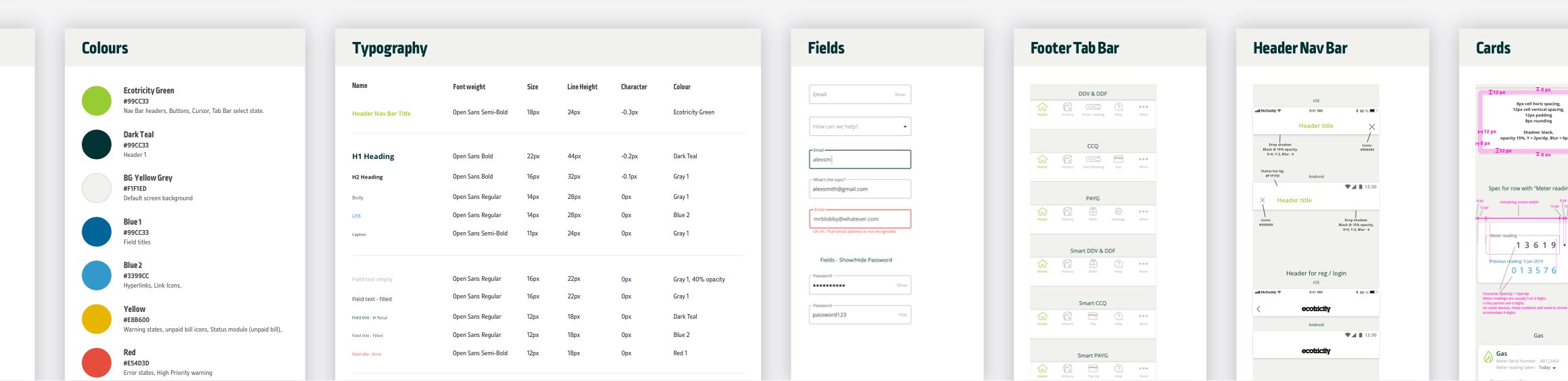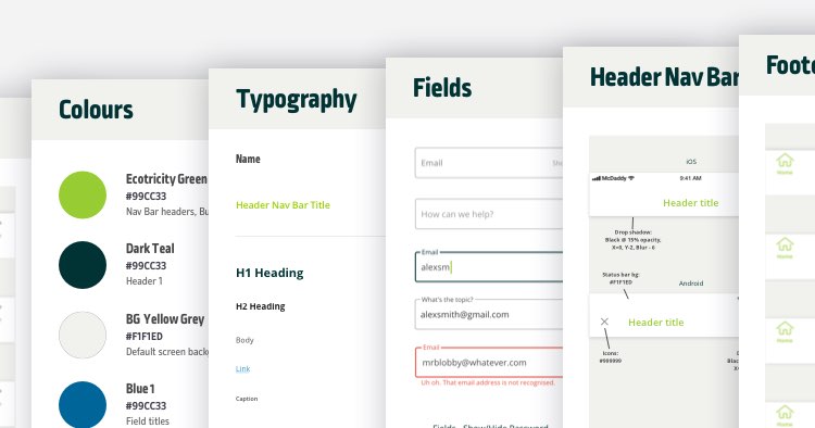 Ecotricity did not yet have a design system in place, so I created a light one along with a component library which included colours, typography, icons and common components such as buttons, inputs, toggles, cards, nav bars, etc.