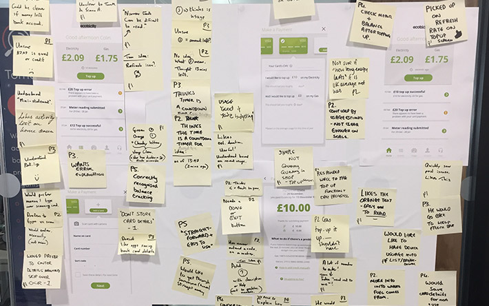 With a prototype built, I would dedicate a day in each sprint doing usability testing on 5 or 6 members of the public. We tried to to get people that considered themselves environmentally friendly to reflect Ecotricity’s market.